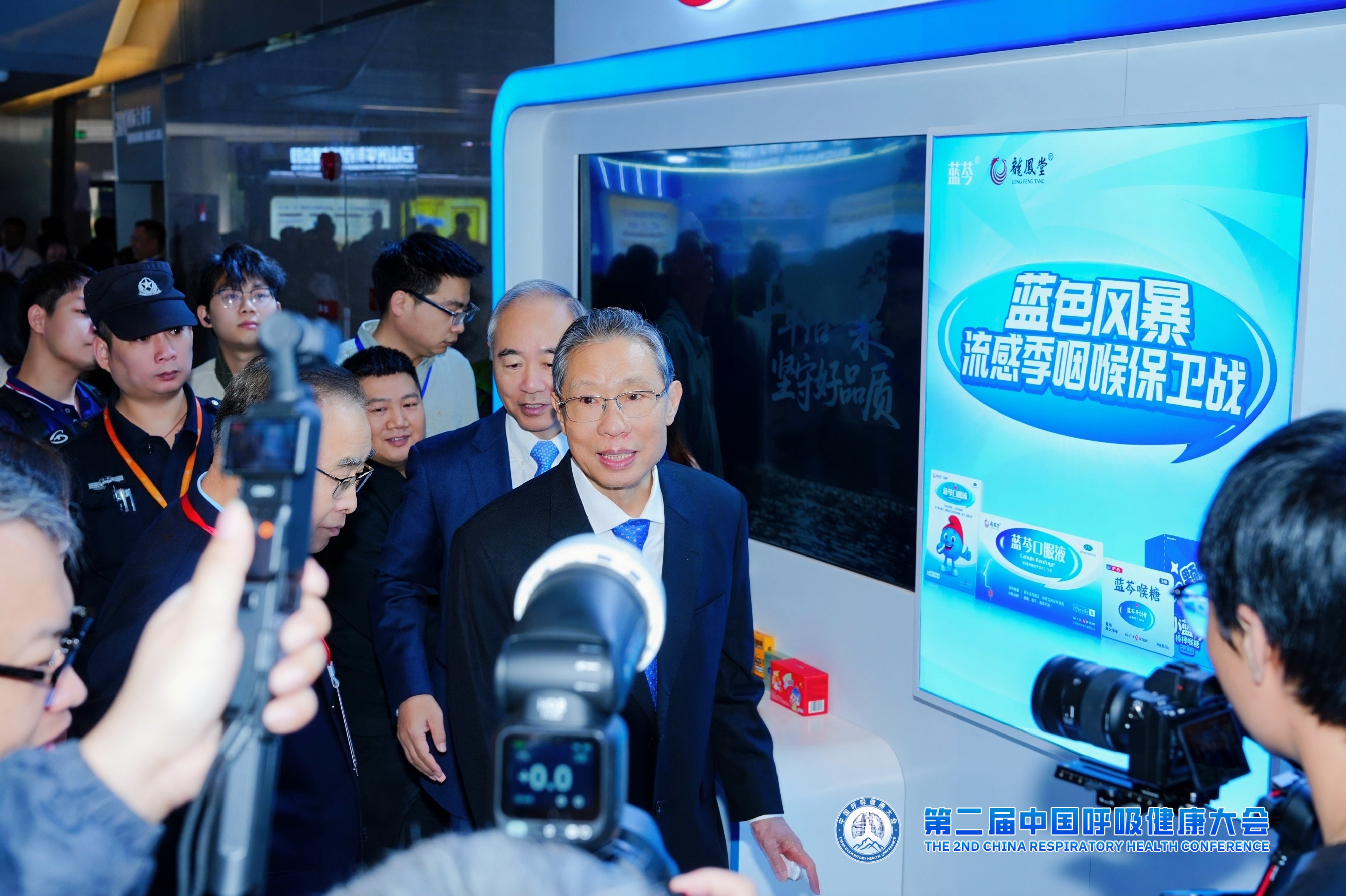 现场,扬子江的“蓝色风暴”特装展台对旗下蓝芩系列产品进行集中展示,得到钟南山院士、张伯礼院士的积极评价。