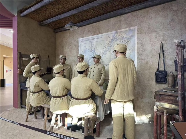 担当写春秋:孙家圩里定乾坤,烽火运筹砺担当。在孙家圩子渡江战役前总委旧址纪念馆旧址复原区,团队成员驻足于一件件朴素的办公用具、一张张泛黄的作战地图、一份份珍贵的历史电文前,沉浸式感受老一辈革命家在简陋的农村环境中,运筹帷幄、决胜千里的雄才大略,深刻认识到渡江战役的胜利,是中国共产党领导的人民战争的伟大胜利,是马克思主义军事理论中国化的生动实践典范。